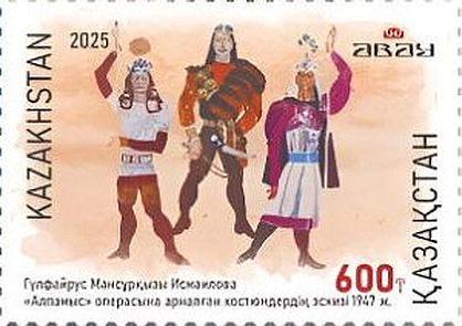 6 x 600 T, Gebäude des nationalen Opern- und Ballett-Theaters von Kasachstan und Porträts verschiedener Sänger. | Opernhaus, Sänger |