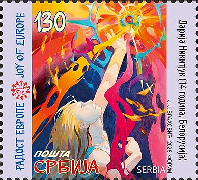 60 Din, 75 Jahre Museum für angewandte Kunst in Belgrad, u.a. Grafik eines Tanzpaares | Tanz |